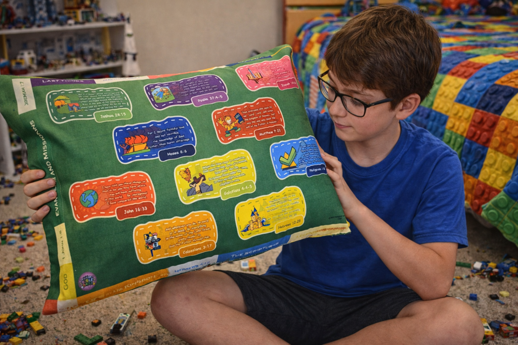 Our new designer Pillowcases encourage children and youth to treasure God’s truths and learn Scripture in a way that feels achievable and enjoyable. Comfortable, soft, pillowcases provide a large “can’t-miss-it” visual, with easier access for review, and are definitely harder to lose! For use at home, sleepovers with friends and grandparents, camps and trips.